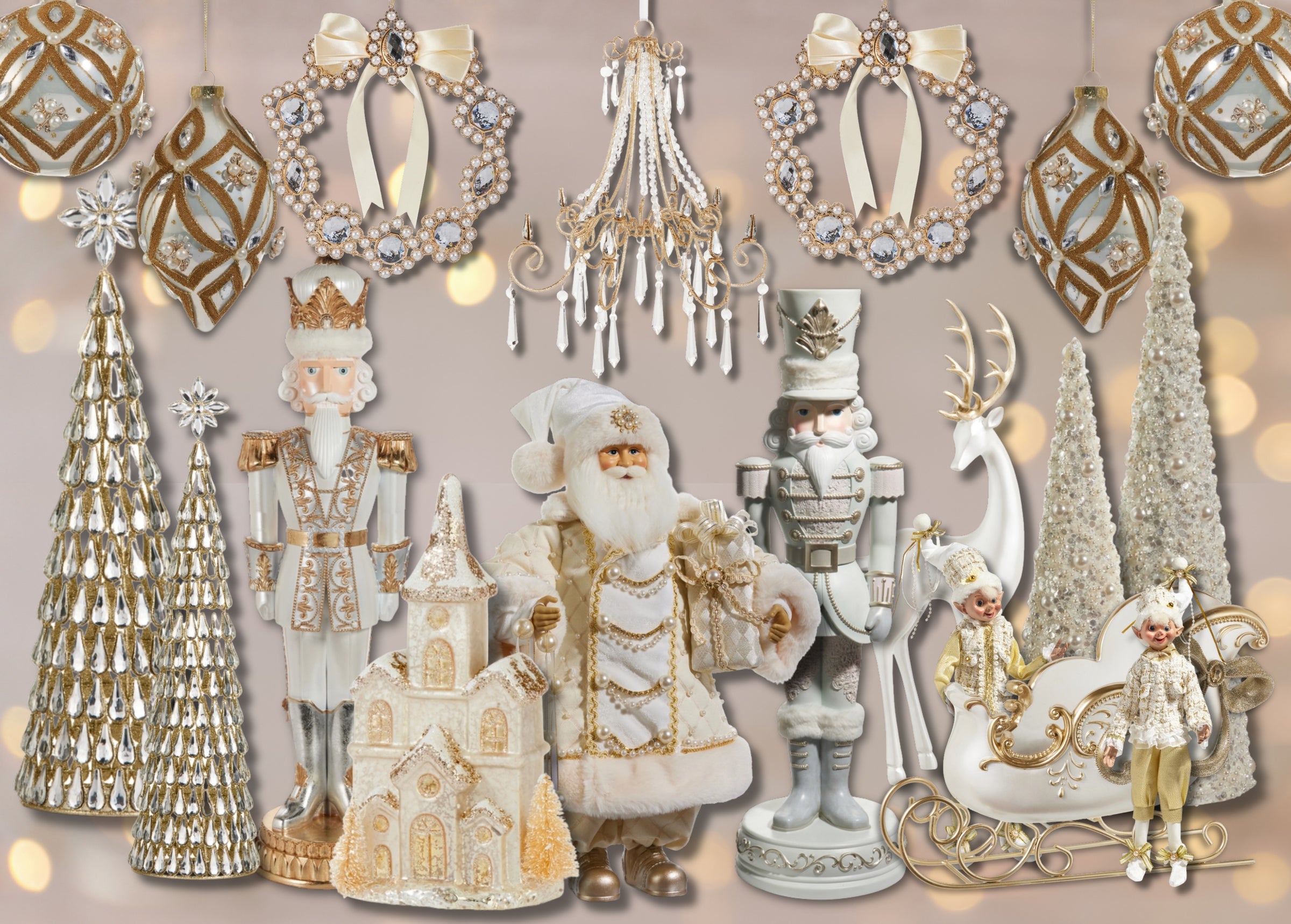 Elise Gold & Silver Glitter Finials w/ Bows (Set of 24)