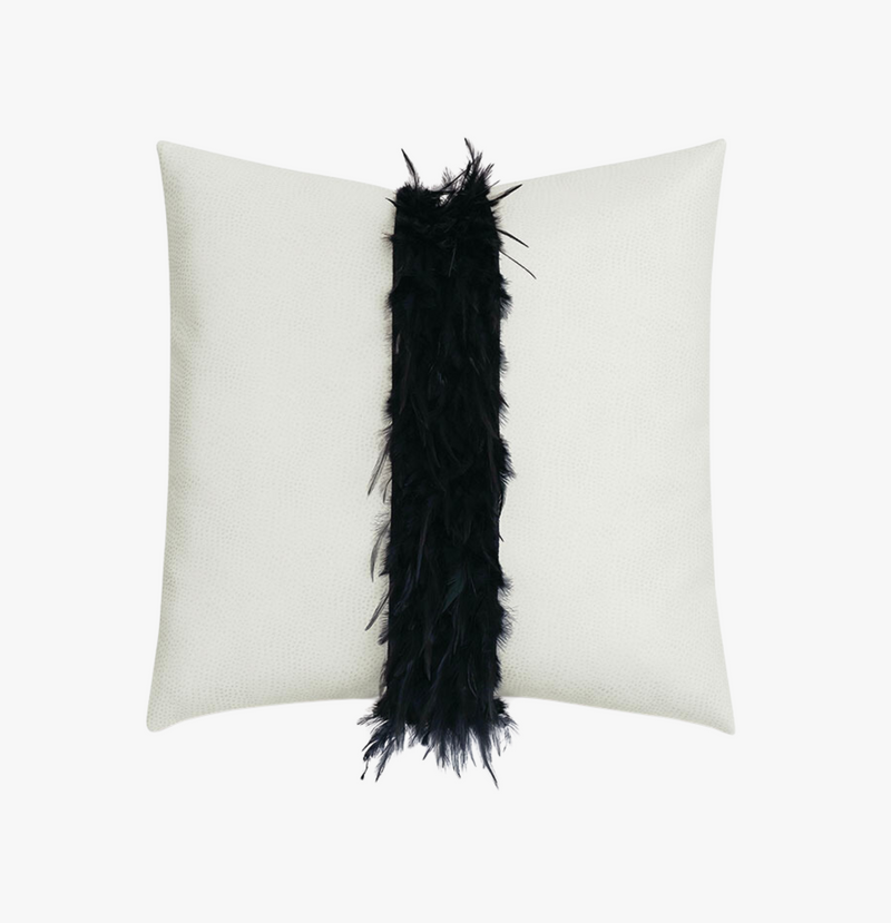 Jolie Ostrich Leather Feather Trim Suede Pillow