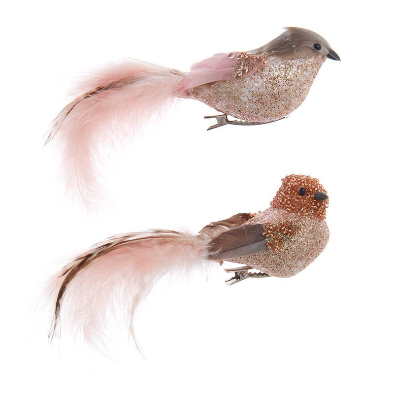 Ferro Pink & Silver Glitter Bird Ornaments (Case of 12) 7"