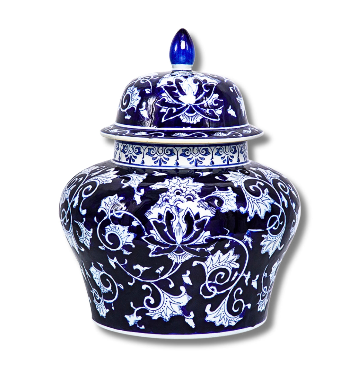 The Aline Ginger Jar Large offers a timeless grandeur with its bold contrast of blue and white and elegant flourishes. Its versatile design makes it perfect for complementing various decors, whether it's displayed on a grand mantle or in a bright, airy garden-themed space. Crafted from 100% porcelain, this jar exudes elegance and is a must-have for any room. Its classic design makes it suitable for both traditional and modern spaces.