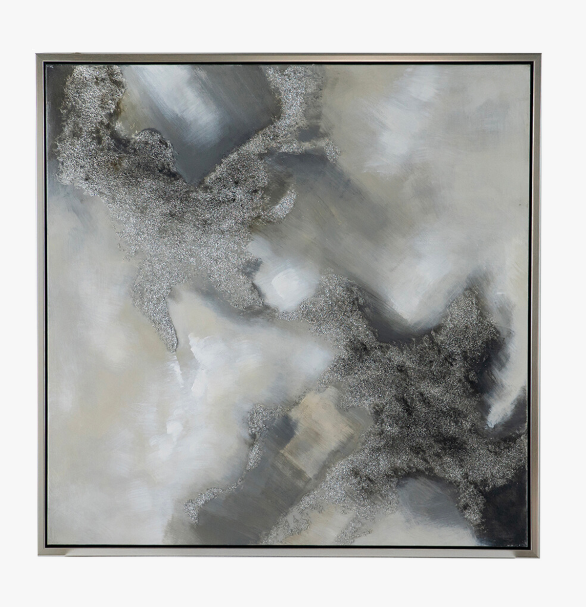 Capturing the intensity and beauty of a storm, this painting features swirling brushstrokes, layered colors, and contrasting tones in whites, grays, and blacks. A simple, dark frame can complement the artwork's dramatic atmosphere.