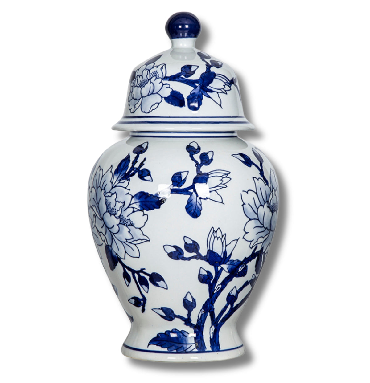Handcrafted from 100% porcelain, this timeless and functional ginger jar takes inspiration from the Ming Dynasty. Standing at 14.5 inches tall, it adds a pop of color to any space in your home and can serve as a decorative storage piece, a standout centerpiece, or a vessel for a vibrant flower arrangement. It also offers discreet storage for small items and can add a touch of decorative flair to your mantel, bookshelf, or tabletop with its two-toned colorway. Versatile and elegant, this ginger jar brings a touch of sophistication to any room, blending traditional and modern styles seamlessly.