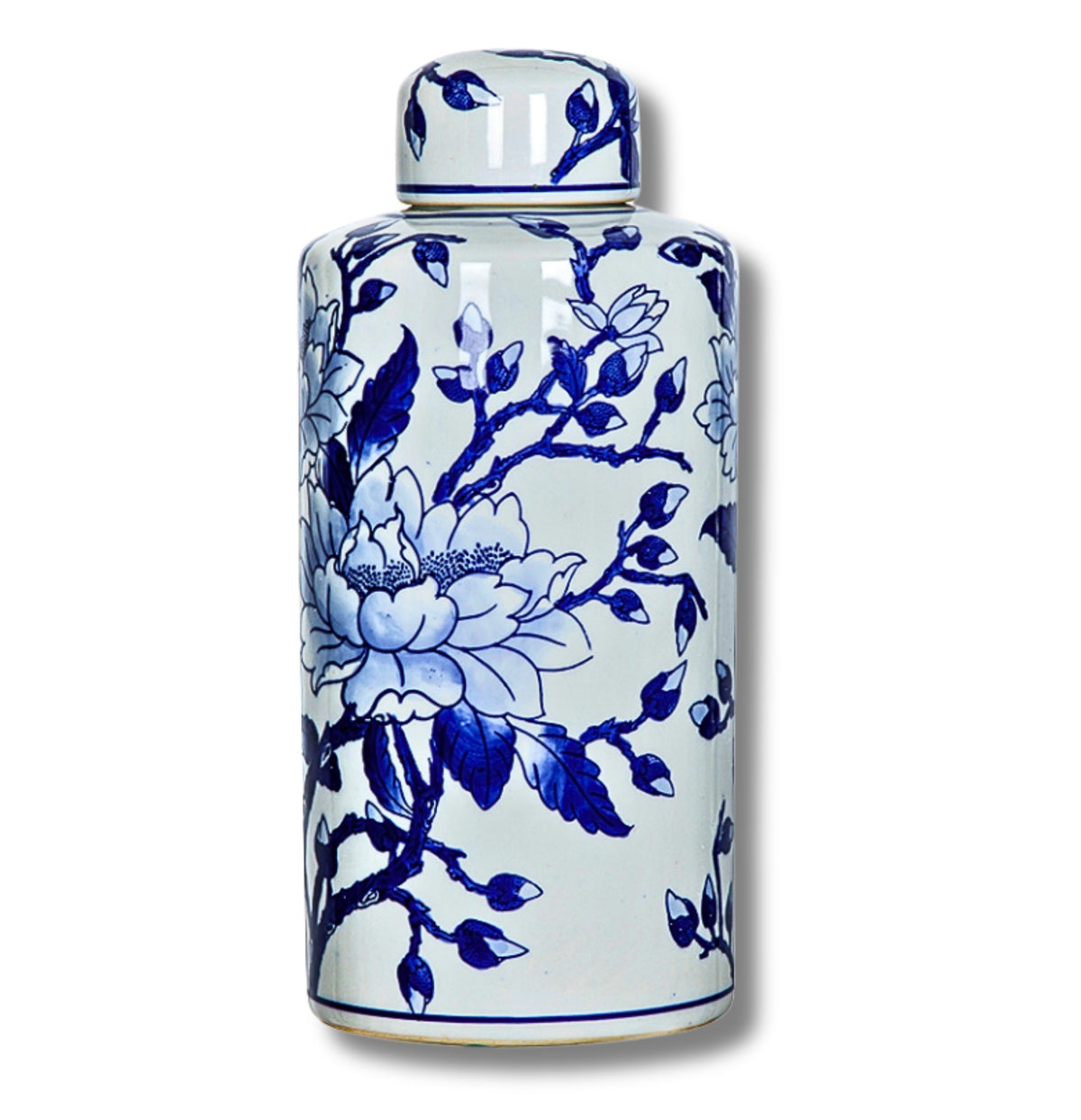 Discover the timeless elegance of magnolia blossoms with this versatile and durable blue and white porcelain jar. Whether used for storage or as an eye-catching accent, this lidded jar adds sophistication to any room in your home. Crafted with high-quality porcelain, it showcases the delicate charm of blooming magnolias, making it the perfect addition to your living room, dining room, entryway, or office. Trust in its classic design to elevate your decor and elevate your space with a touch of sophistication.