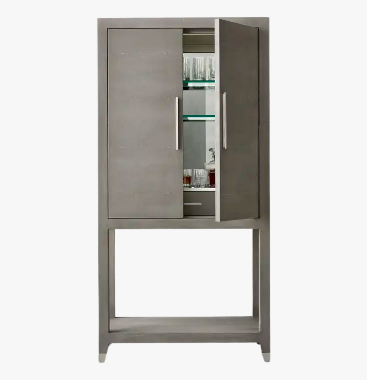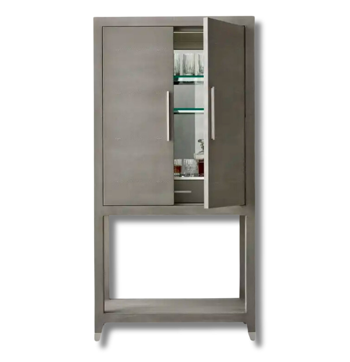 The Bobbi Bar Cabinet features a durable hardwood frame and high-quality grained leather with hard-wearing brass hardware. It's a piece of fine furniture that's designed to last, with expert craftsmanship and materials that will stand up to years of use.