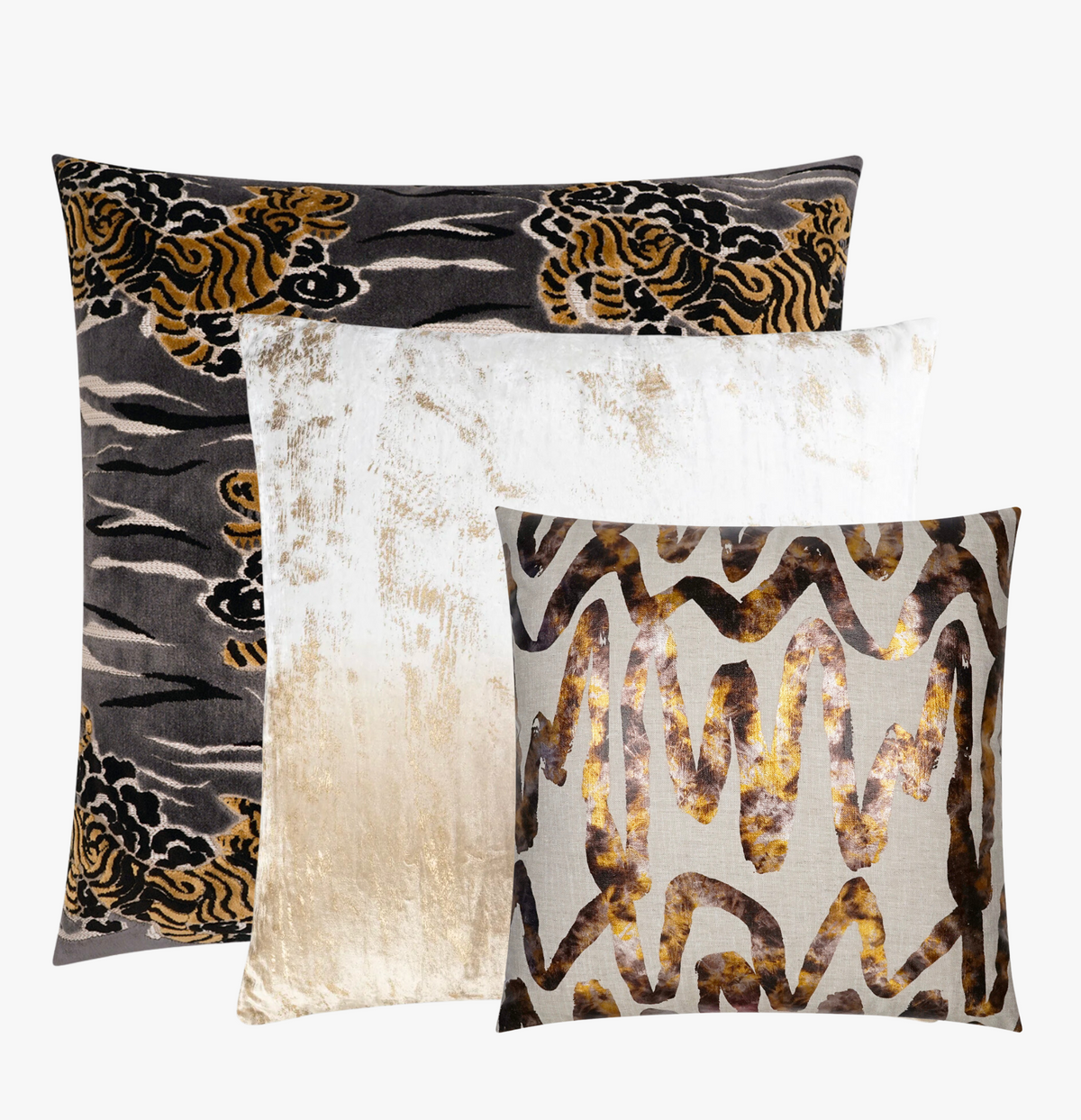 The three pillows come together to create the ultimate set that will elevate the look and feel of any bedroom or living room. Their soft textures, elegant fabrics, and sophisticated designs make them an ideal addition to luxury settings. They are the perfect combination of style, comfort, and refinement.