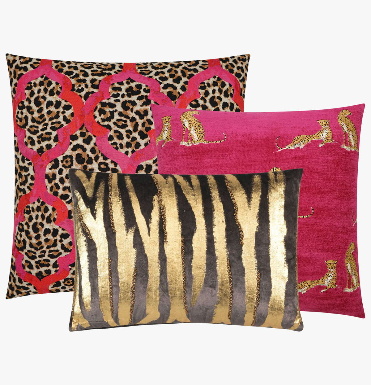 The three pillows come together to create the ultimate set that will elevate the look and feel of any bedroom or living room. Their soft textures, elegant fabrics, and sophisticated designs make them an ideal addition to luxury settings. They are the perfect combination of style, comfort, and refinement.