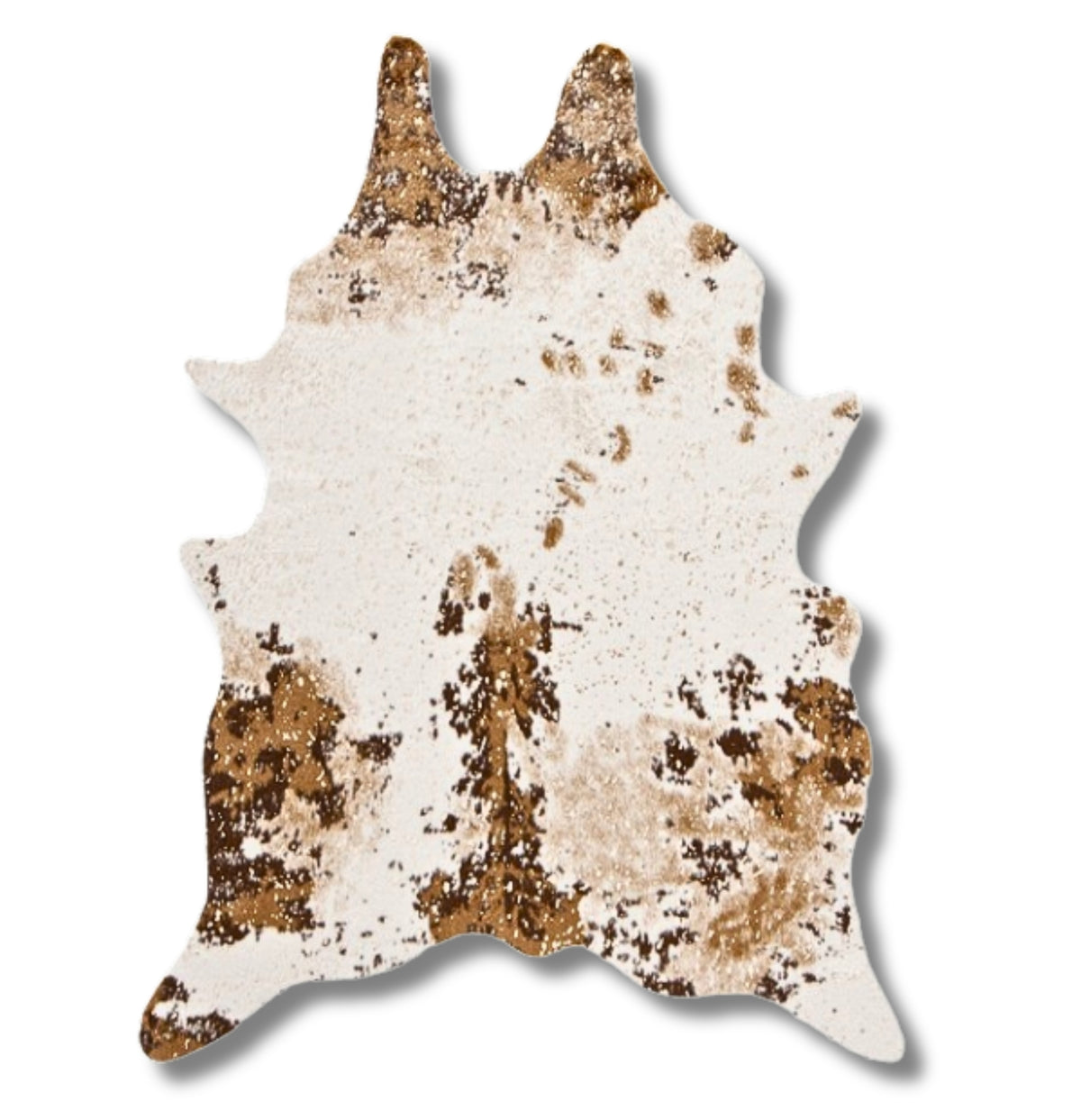 Elevate your home with the Ophelia Beige & Dark Brown Faux Cowhide Rug. This luxurious rug adds style and coziness to any room with its soft, minimal pile height and sturdy power-loomed design. With its versatile color scheme, this rug is the perfect addition to any home decor.