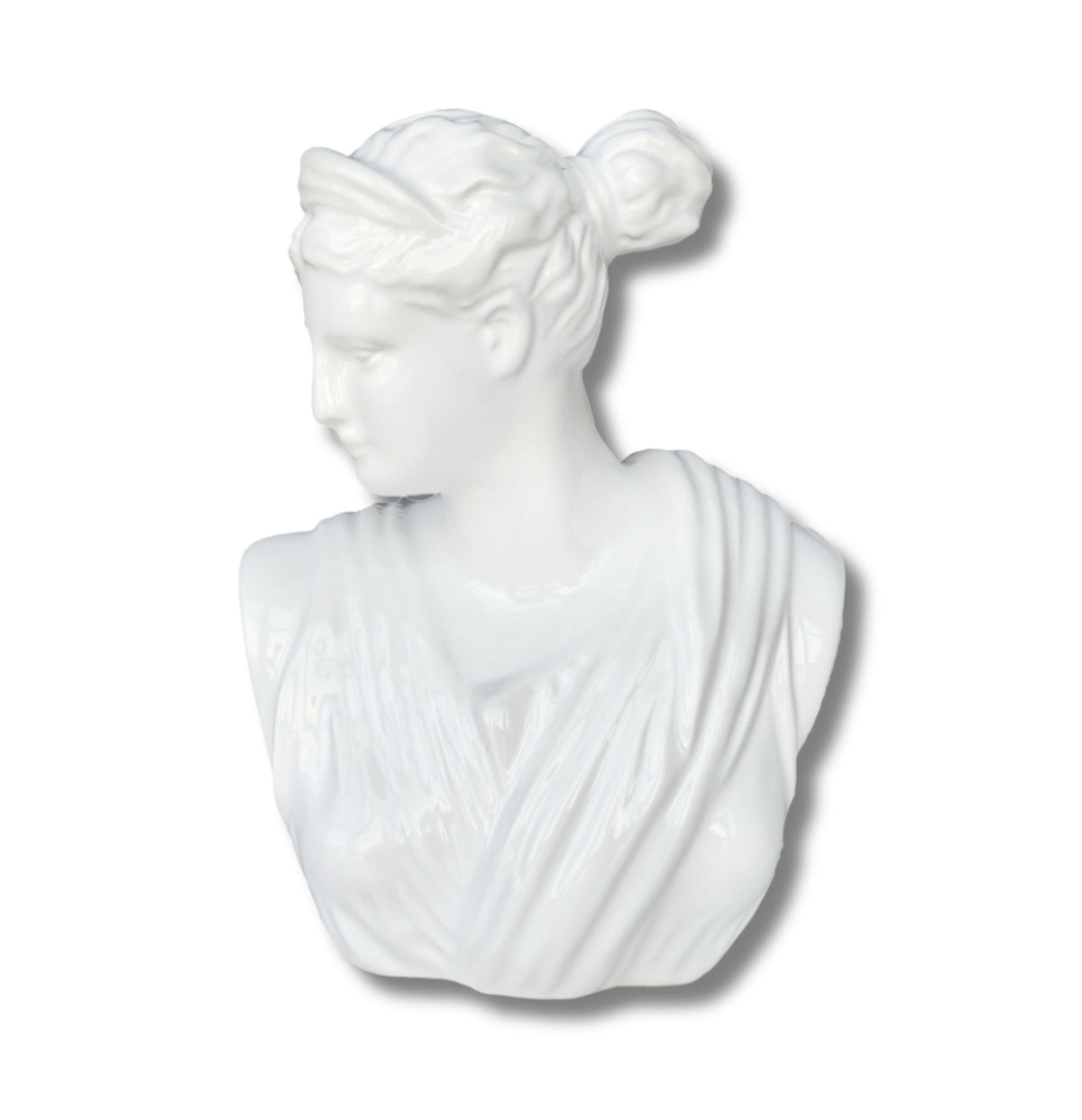 The Odessa Bust Statue is expertly crafted from durable and elegant ceramic, featuring a smooth and glossy white finish. Its intricate details, from the hair and face to the clothes, exude timeless charm and European influences. This versatile bust effortlessly complements transitional, traditional, modern, and bohemian themes, making it the perfect addition to any tabletop, bookshelf, or console. With its neutral color and classic design, it infuses any room with refined intrigue. Additionally, the statue's construction ensures long-lasting quality.