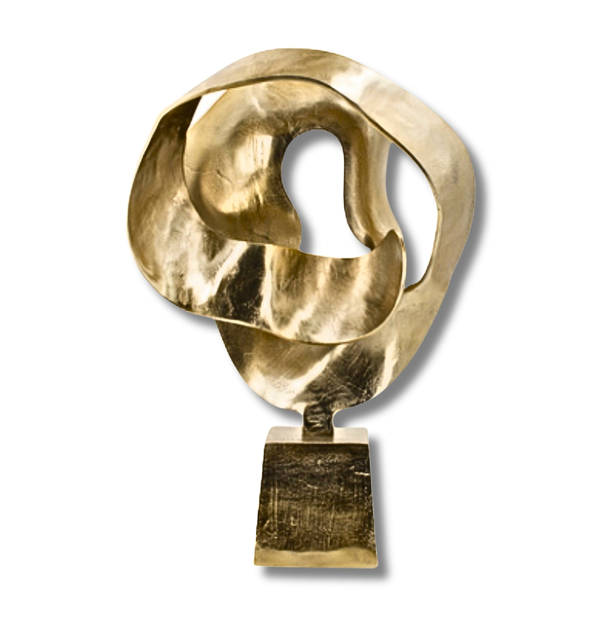 The Soleil Abstract Sculpture, perched upon a pedestal base, seamlessly blends elegance, modernity, and artistic expression. With its captivating abstract design and opulent golden tone, it evokes emotions and prompts conversations. The sturdy base serves as a foundation for its display, while its varying dimensions and placement in prominent spaces create a visually impactful statement piece.