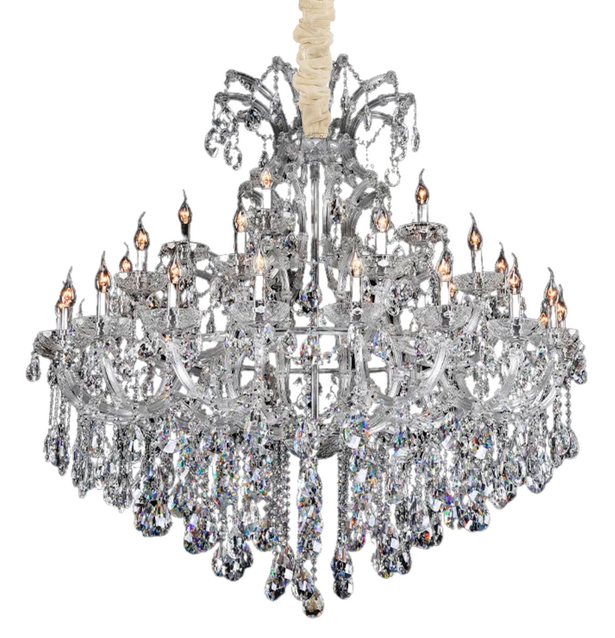 The Harlow Crystal Chandelier is a stunning lighting fixture with 35 light crystals strategically placed for beautiful and balanced illumination. Its elegant design, crafted from high-quality materials, adds a touch of opulence and sophistication. It serves as a focal point in any room, transforming the atmosphere with its unique ambiance.