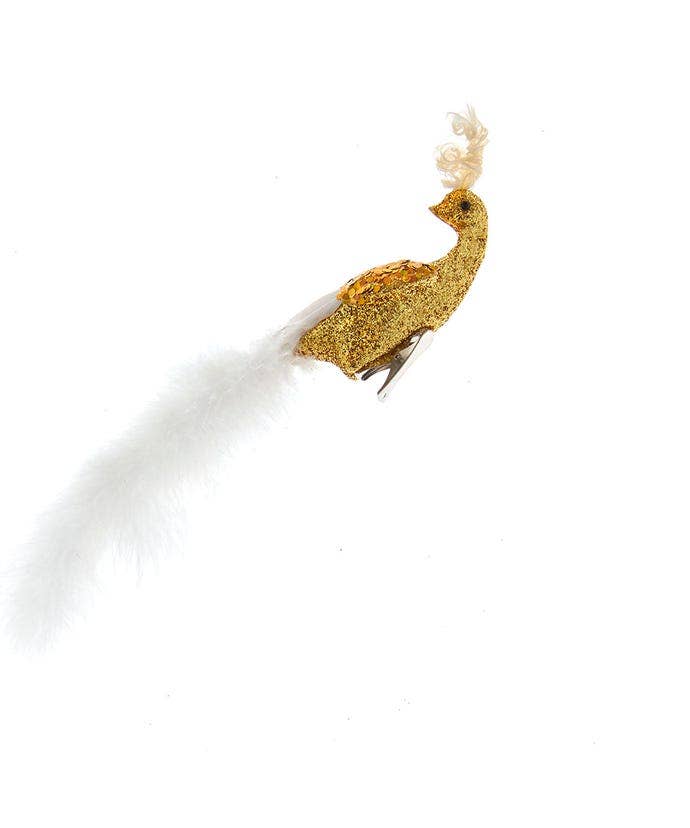 This stunning Christmas decoration showcases a Gold Phoenix with White Feathers and can be fastened with a metal clip.