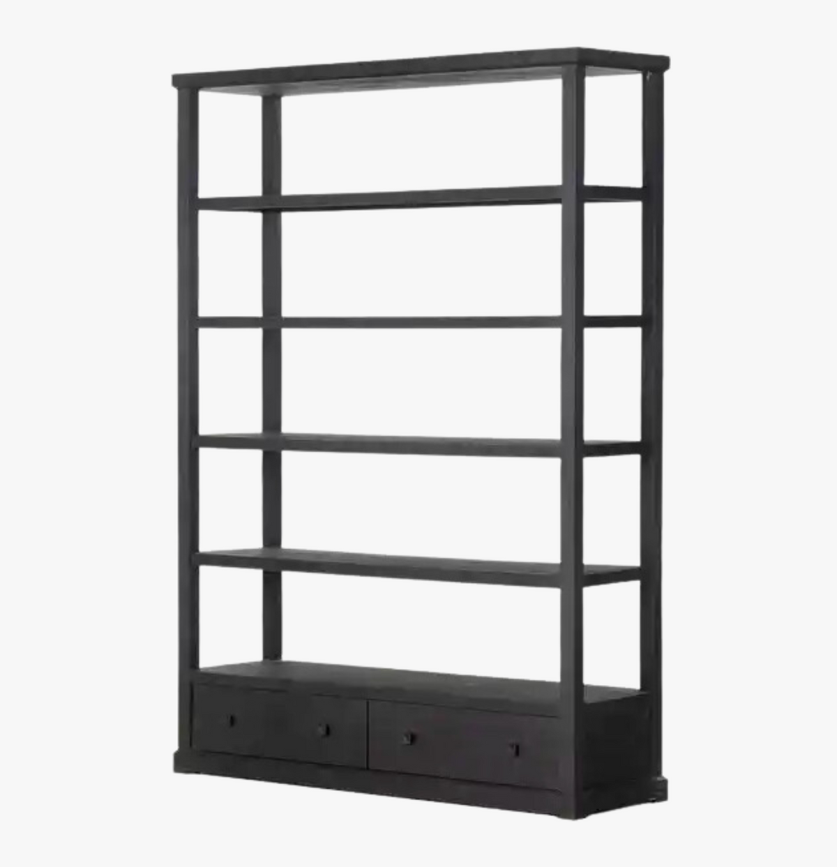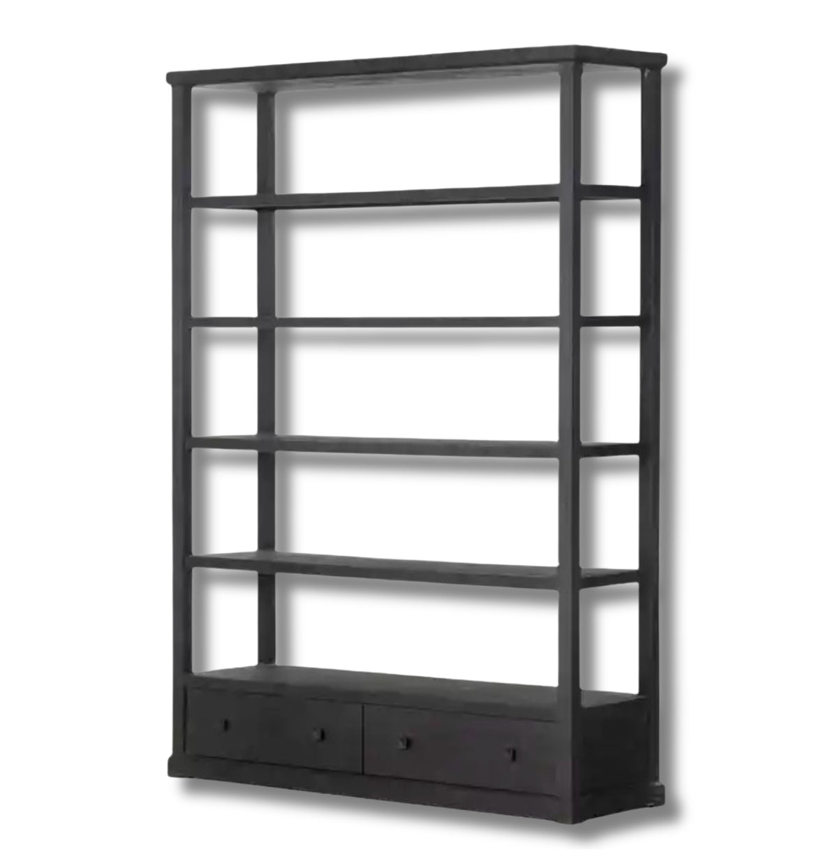 Crafted from durable reclaimed wood, our Kano Shelves offer 4 spacious shelves for all your storage needs. Keep your books, decor, and other essentials organized and stylishly displayed with this sleek black bookcase. Upgrade your home or office with this eco-friendly and functional addition.