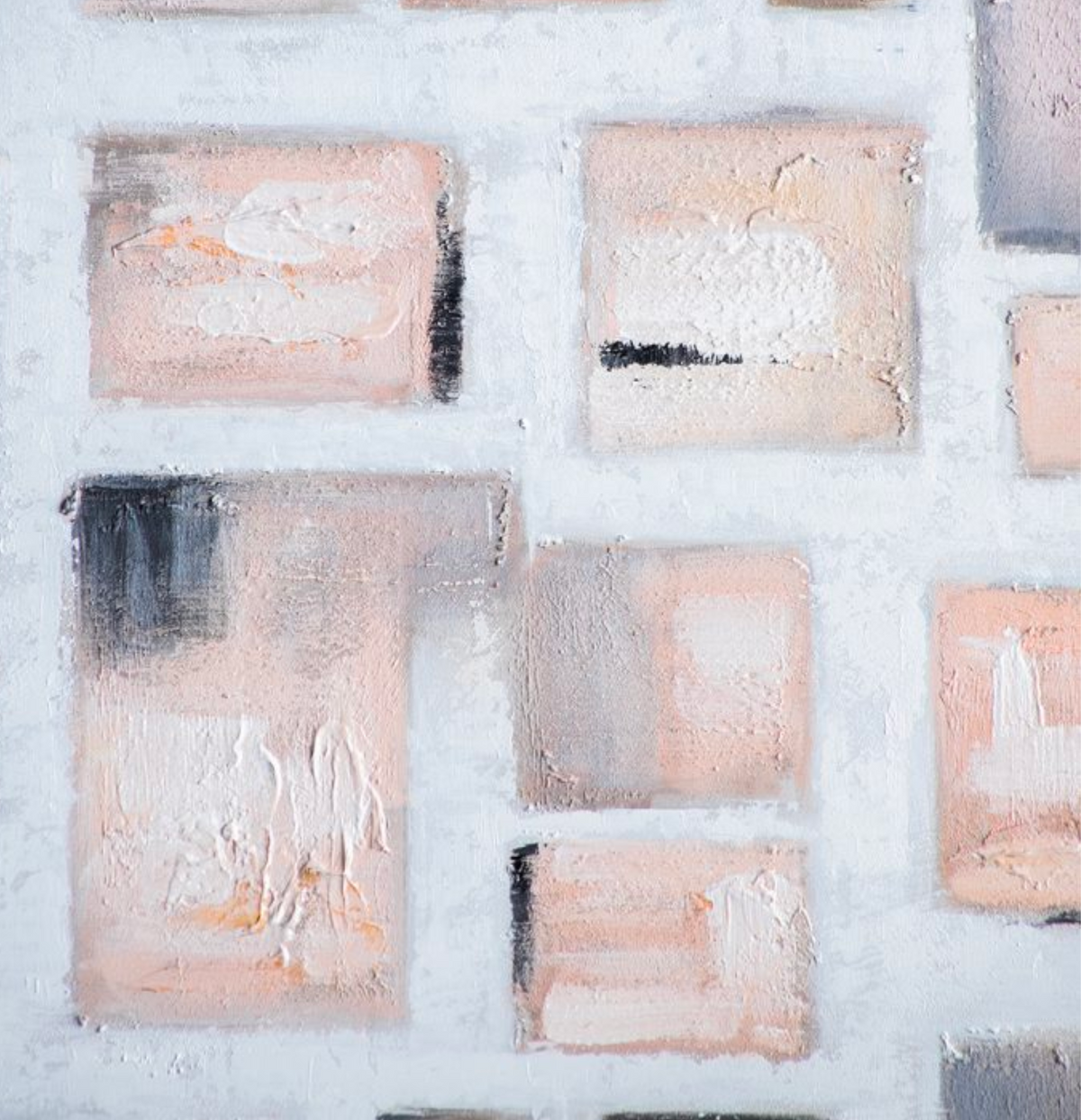 The Heron Block Oil Painting features a beautiful blend of pink and gray oils, creating an ethereal, feminine, and sophisticated feel. The painting showcases a gradient effect of pink tones, balanced by delicate strokes of gray.