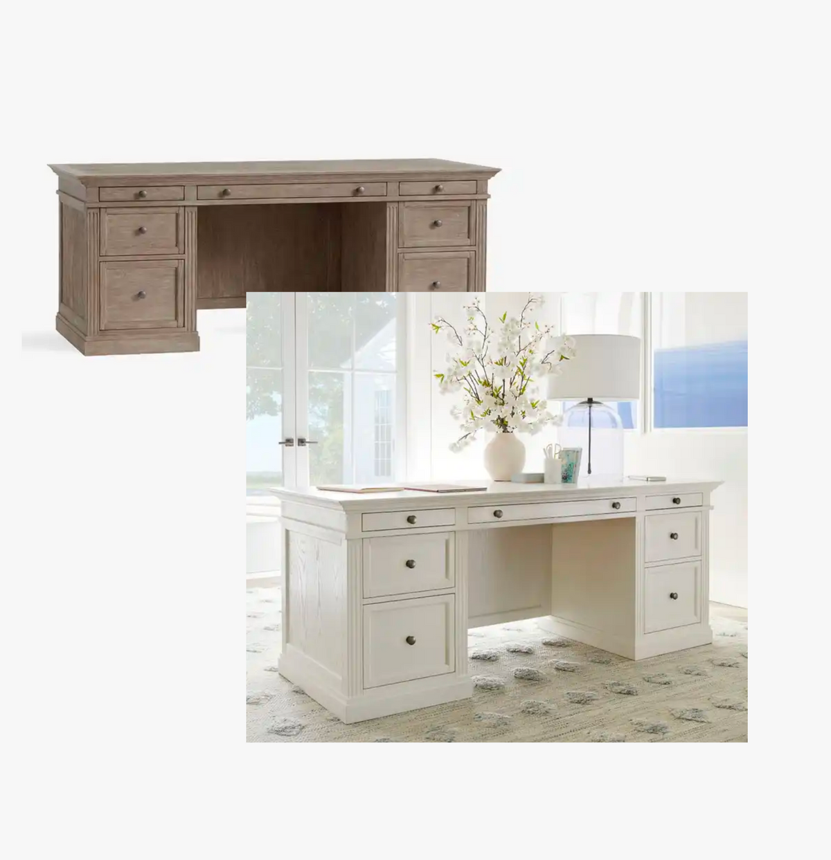 Crafted from sturdy oak and adorned with high-quality metal hardware, the Davide Executive Desk is available in both taupe and ivory, serving as a seamless addition to any decor aesthetic.