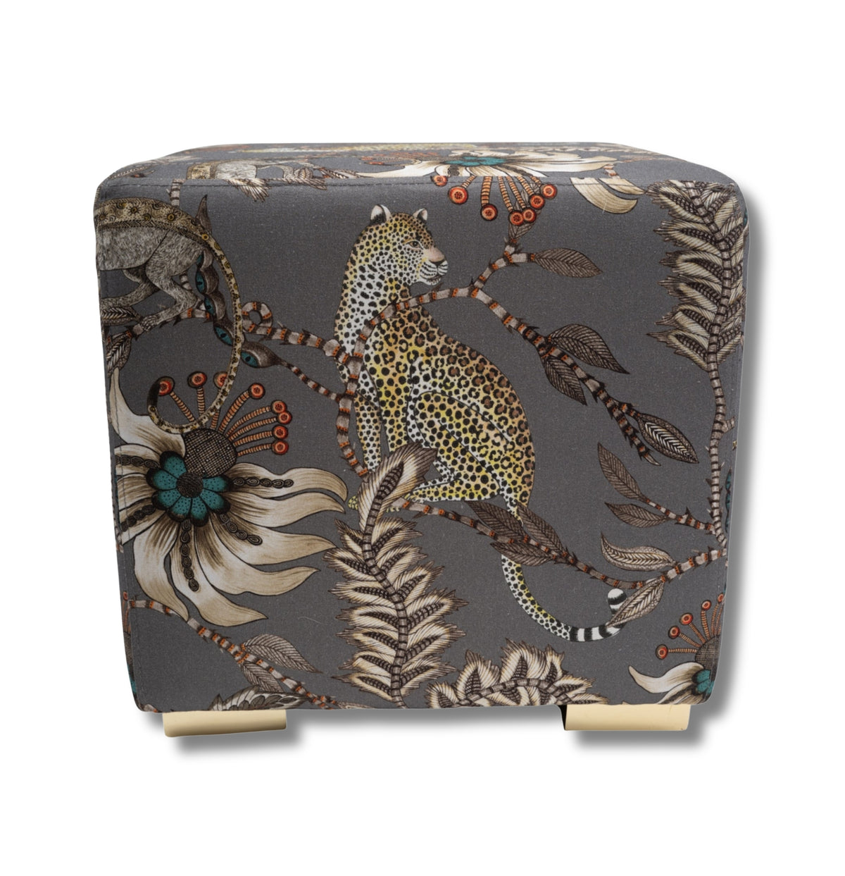 Constructed with a captivating pattern featuring woodland creatures, this stylish bean ottoman is crafted from deluxe linen fabric and finished with brass feet. The combination of coral and brass tones adds an elegant touch to any room. Boasting sturdy construction and a cozy design, this ottoman is perfect for lounging or providing additional seating. Its fabric contains 70% linen and 30% viscose, providing a soft and durable texture.