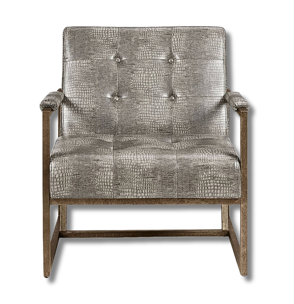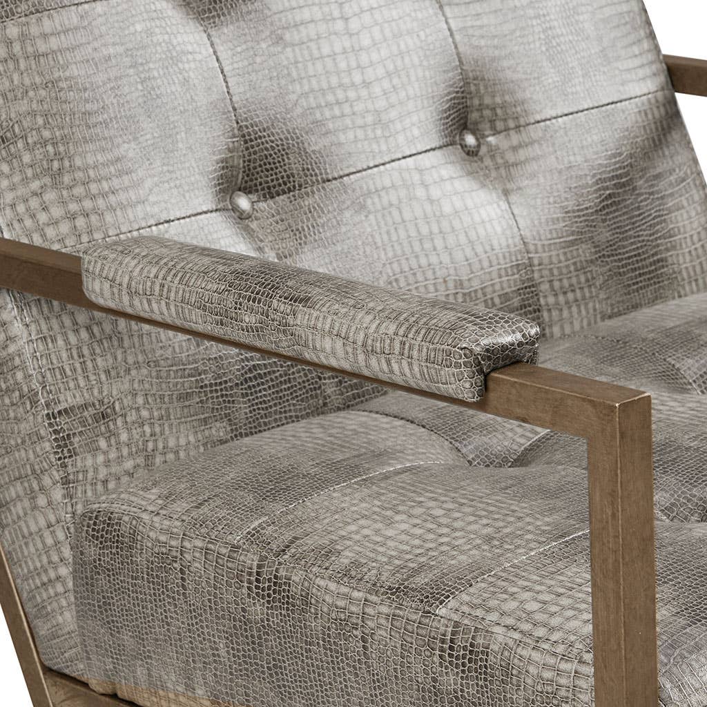 The Lyle Python Snakeskin Chair boasts a sophisticated and elegant design, with its grey snakeskin patterned PU leather upholstery and Antique Bronze finished metal frame. Create a stylish and eye-catching addition to your living room with this chic lounge chair.