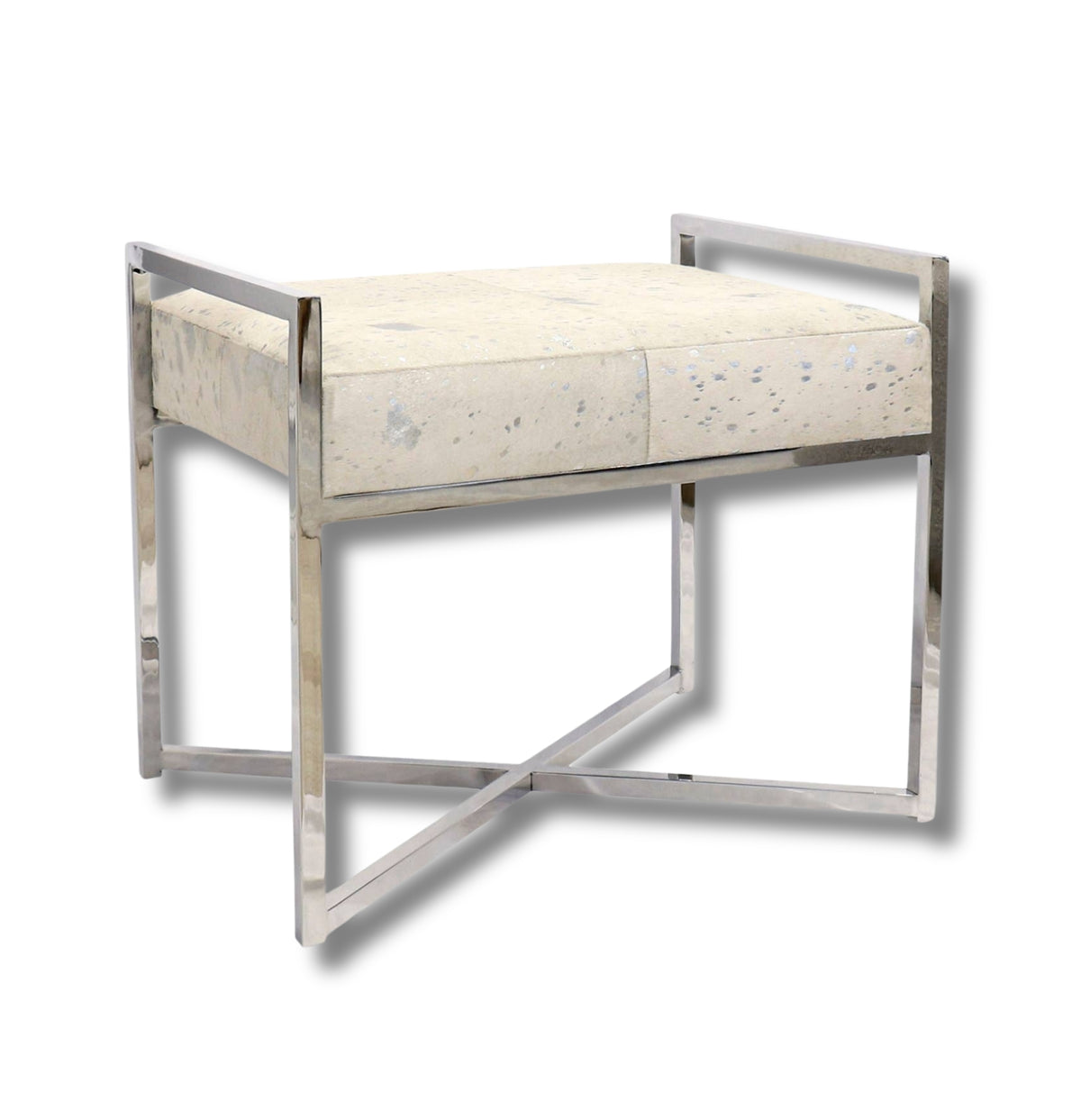 This Avril Safari Cowhide Bench features bold metallic accents, perfect for adding a touch of opulence to any setting. Its modern design exudes elegance and will enhance the appearance of any space.