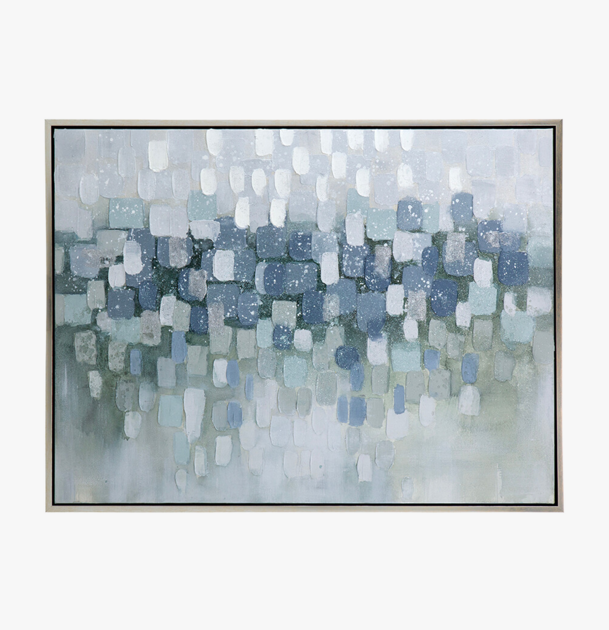 This elegant and captivating abstract oil painting combines silver, gray, and soft blue hues to create a calming and visually engaging composition. The artist's skilled use of oil paints and techniques adds depth and texture to the artwork, while allowing each viewer to interpret its shapes and forms. With the right framing, this painting can serve as a beautiful focal point in any space, evoking a sense of tranquility and artistry.