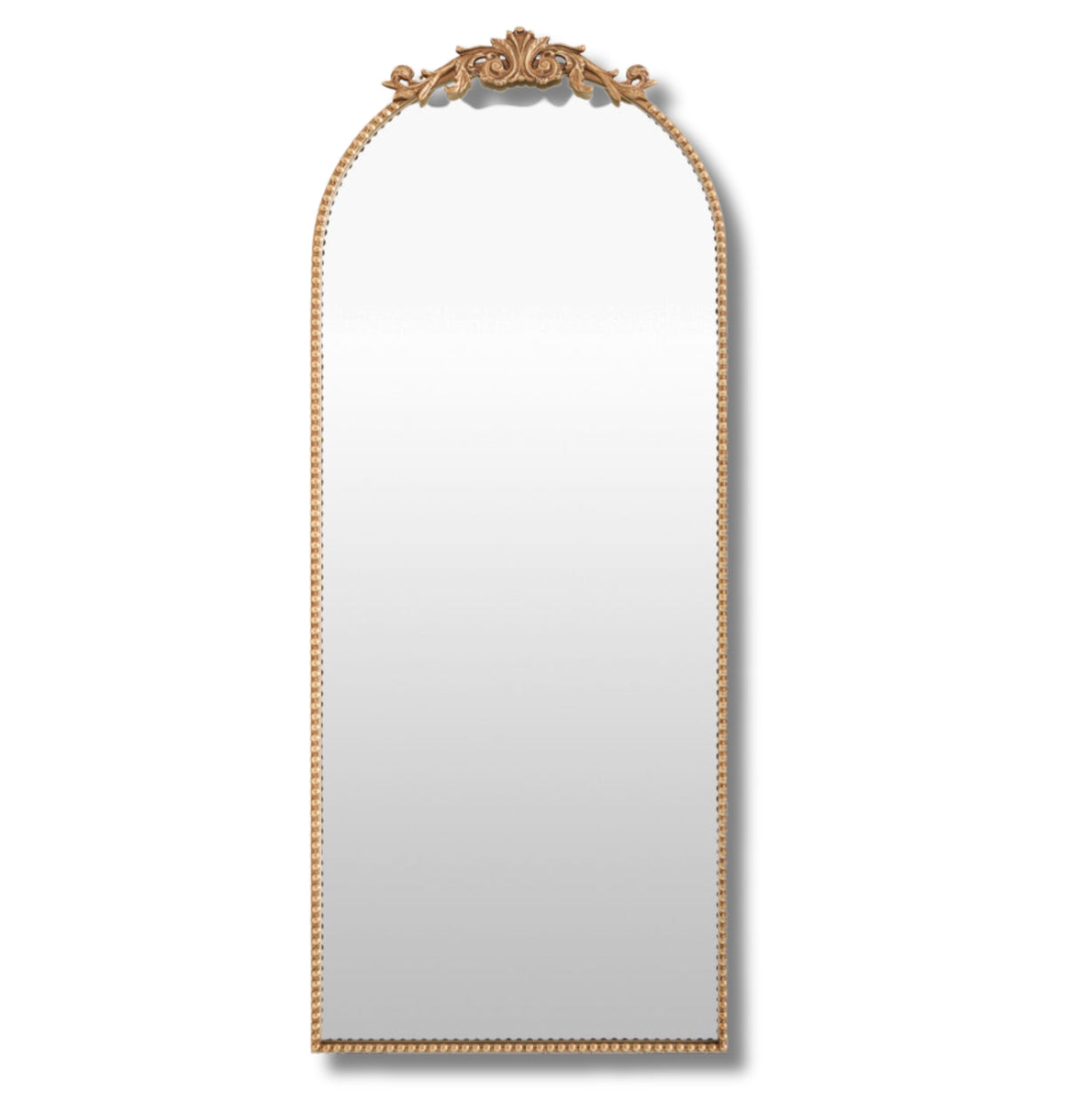 Elevate any room with the Rhett Mirror. Made of durable iron, this full length mirror features an exquisite antique gold finish that adds a touch of elegance to any space. Crafted to last, it's the perfect addition to your home décor.