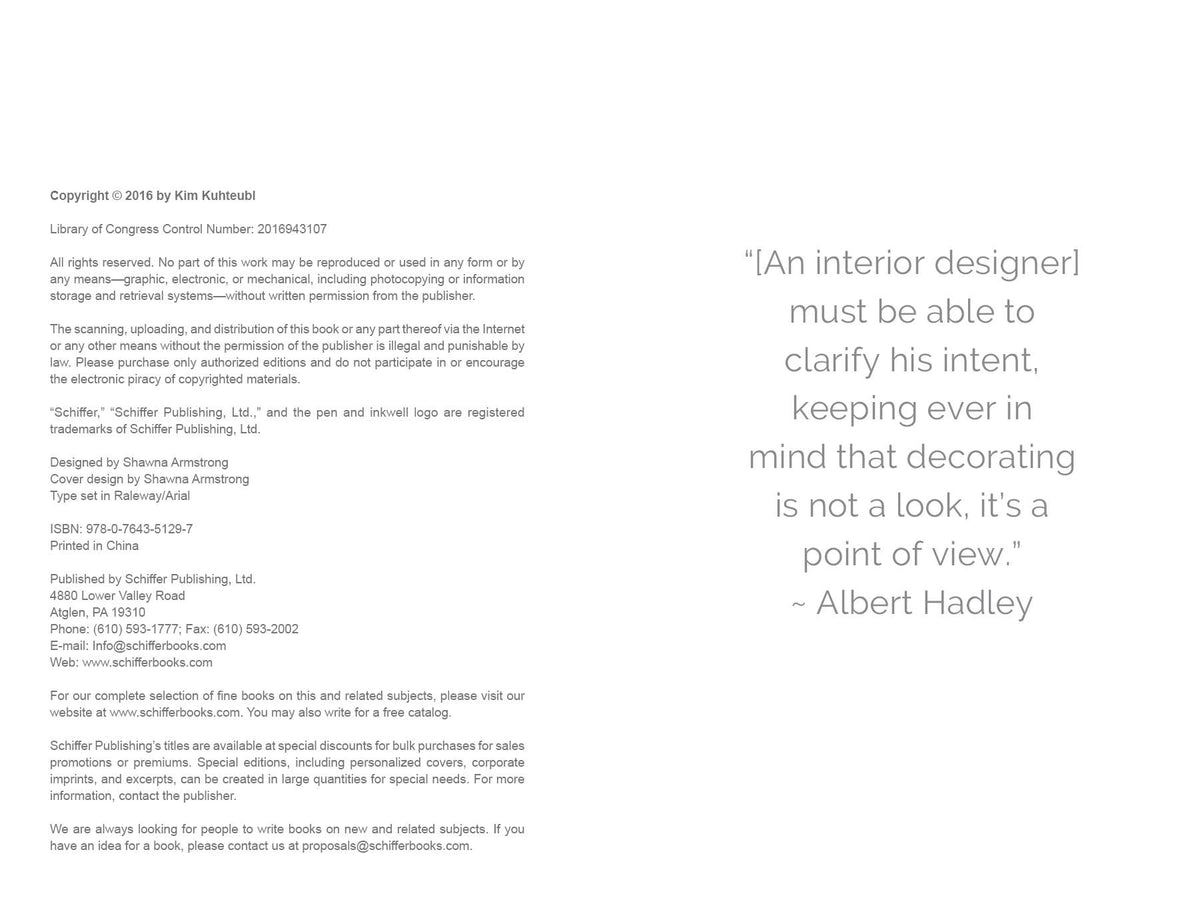 Worksheets give designers the tools to learn these strategies and apply them to their work. It also includes candid conversations with design leaders such as Barbara Barry, Rose Tarlow, Kelly Hoppen, Vicente Wolf, Christiane Lemieux, and Martyn Lawrence Bullard.