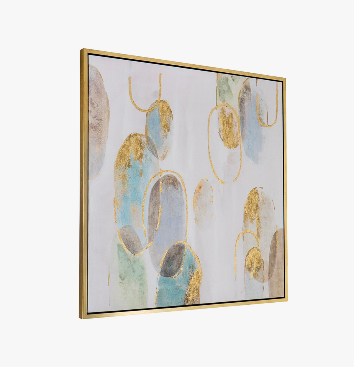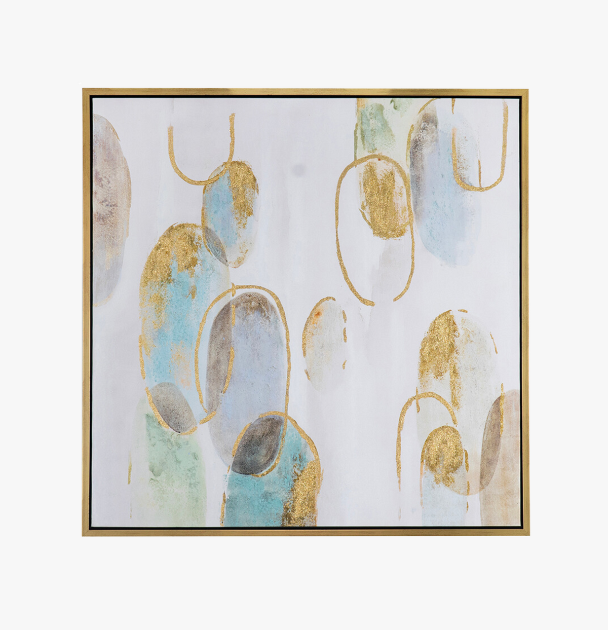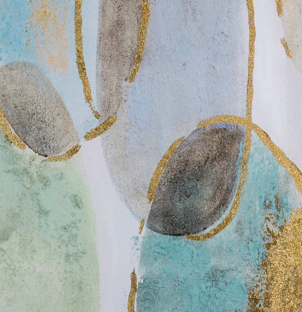 The abstract oil painting features shades of blue, gray, and gold glitter, creating a captivating and mesmerizing composition. The varying textures and colors evoke a sense of mystery and intrigue, making it an ideal focal point for any space. When choosing a frame, a neutral gray or silver can complement the color palette, while a gold frame can enhance the luxurious elements of the artwork.