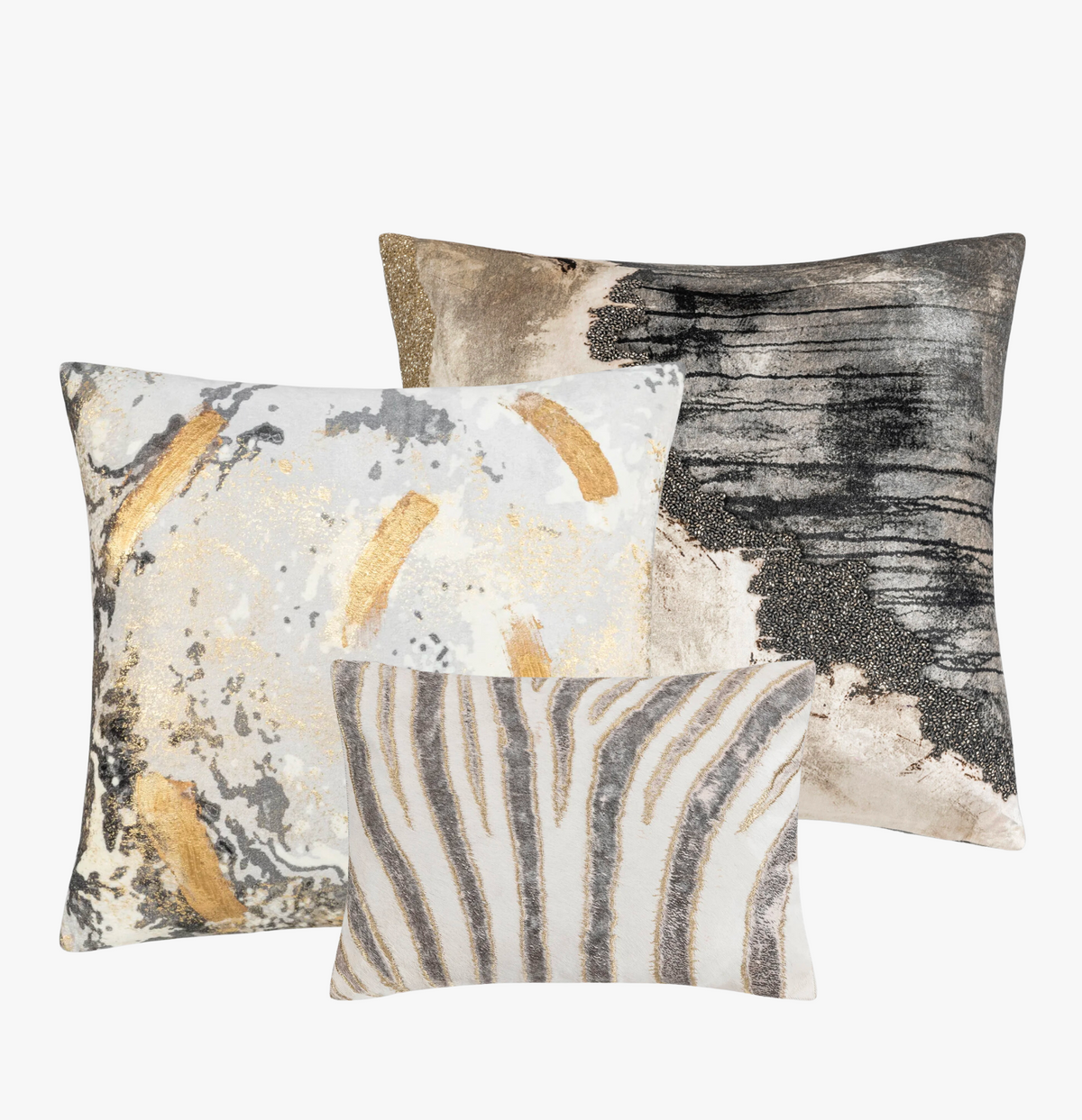 The three pillows come together to create the ultimate set that will elevate the look and feel of any bedroom or living room. Their soft textures, elegant fabrics, and sophisticated designs make them an ideal addition to luxury settings. They are the perfect combination of style, comfort, and refinement.