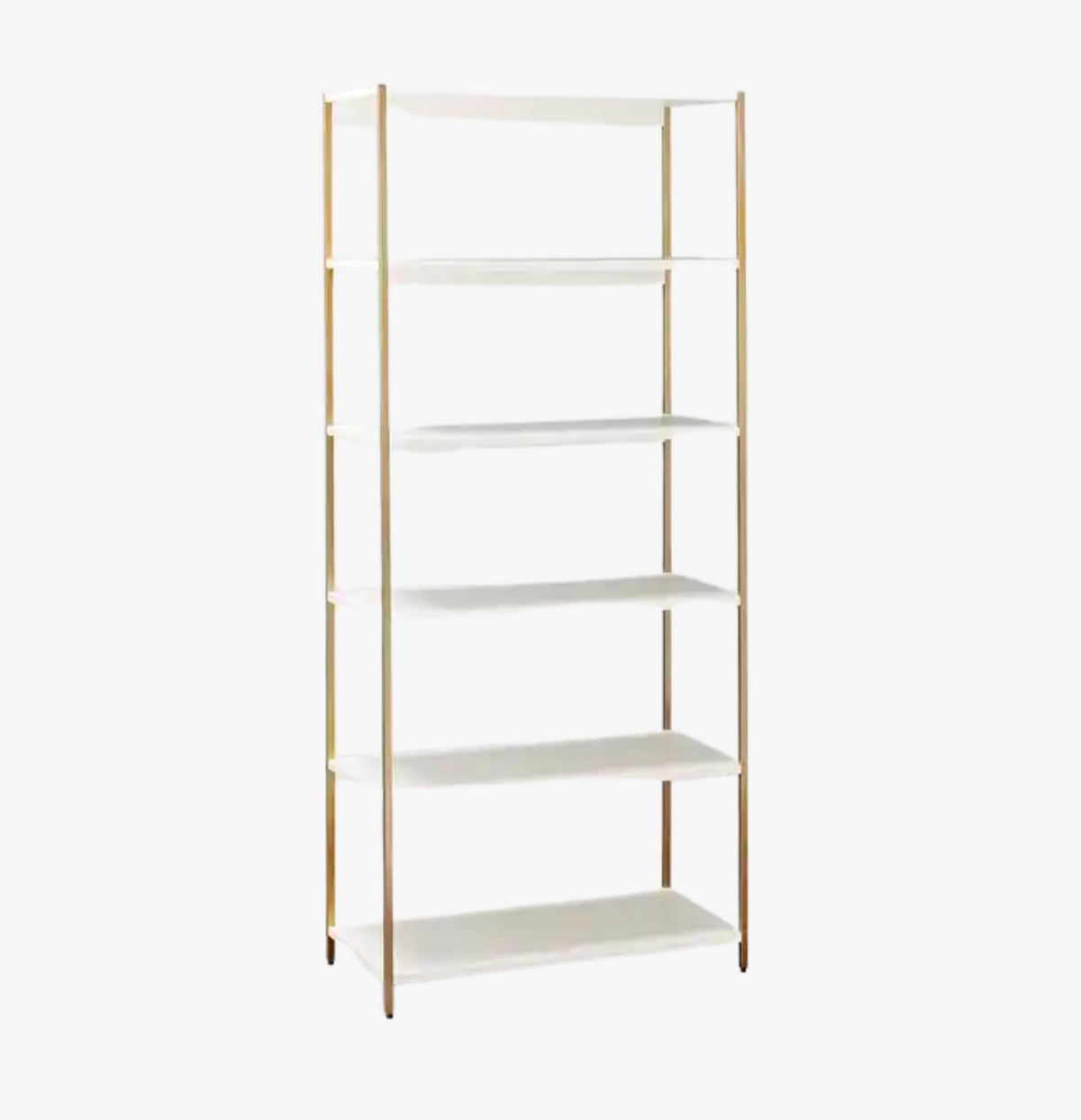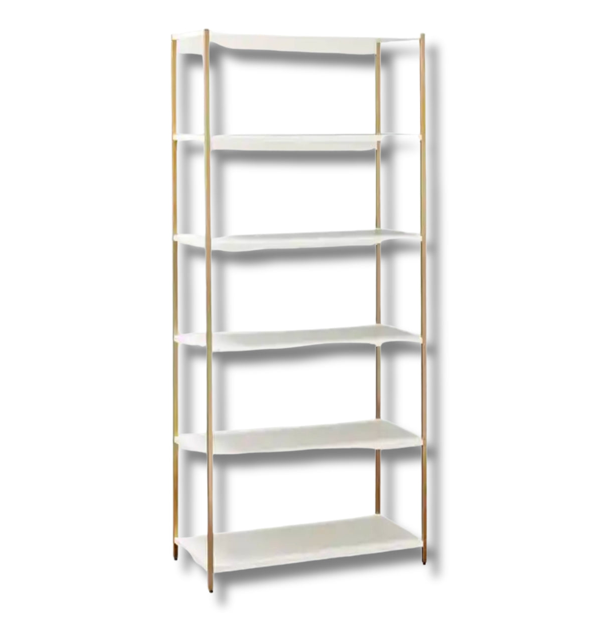 Introducing the Adelaide Shelves - a versatile, visually interesting shelving unit with a sophisticated brass frame and modern white lacquer shelves. It's functional, durable, and easy to maintain with a spacious and sturdy design, perfect for displaying decorative objects, books, and personal belongings. The open design ensures easy access and visibility, making it a practical and timeless addition to any space.
