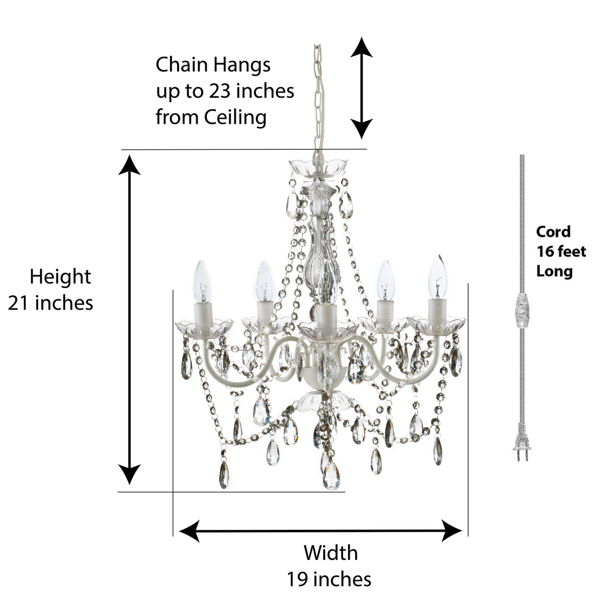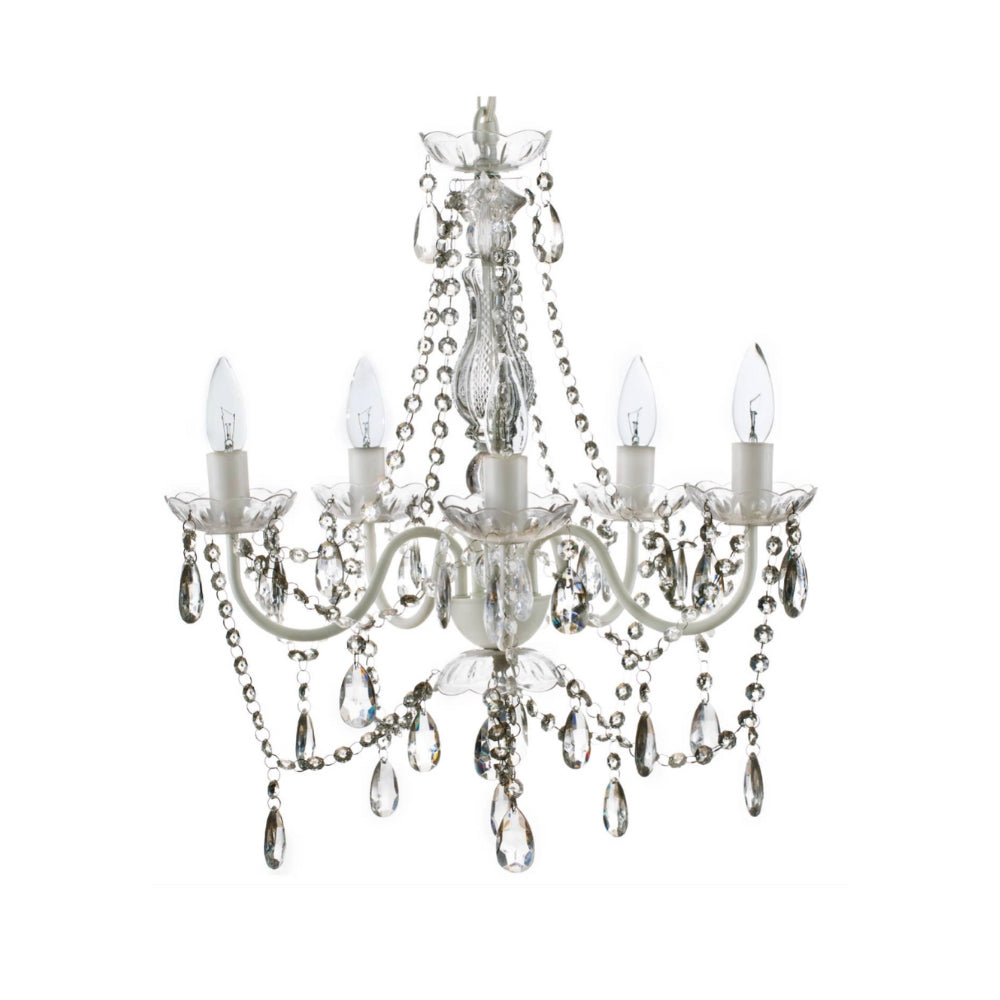 This UL Certified 5 Light Esme Crystal White Chandelier radiates elegance and enhances the aesthetic of any area in which it is hung.