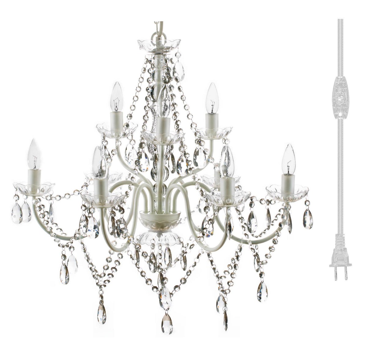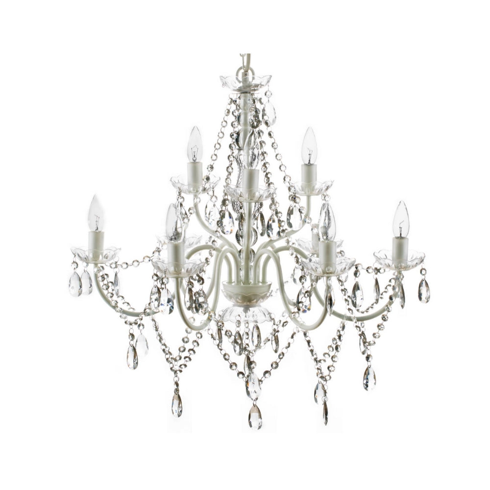 This UL Certified 9 Light Crystal White Chandelier exudes sophistication while elevating the appearance of its surroundings.