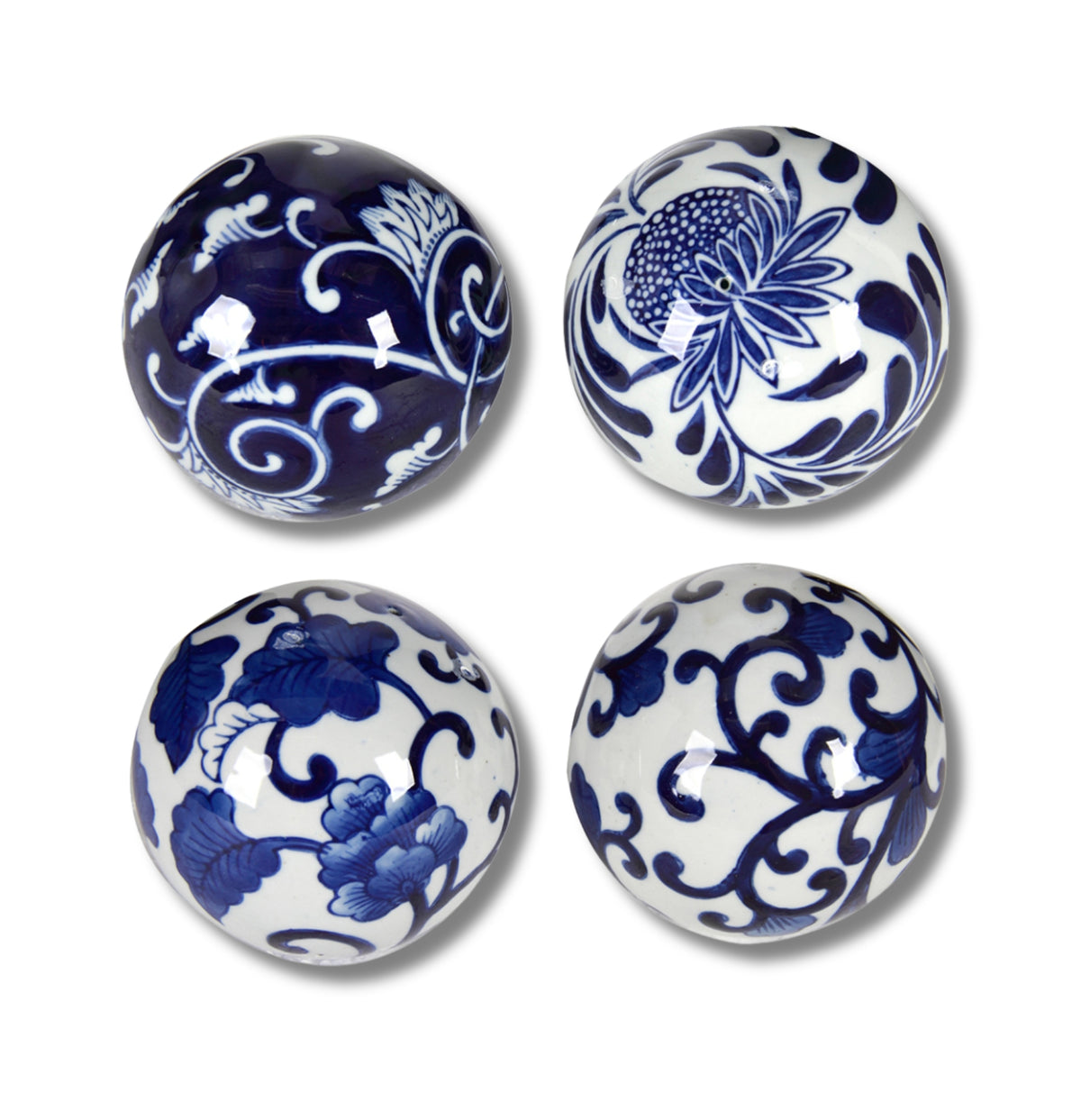 Enhance your living space with these elegant porcelain orbs, adorned with classic blue designs. Whether as a centerpiece on a table, on decorative stands, or incorporated into your own artistic creations, this set is a stunning addition to your home decor. Made entirely of high-quality porcelain, the orbs add a vibrant touch of blue to any room, making them suitable for formal and casual settings alike.
