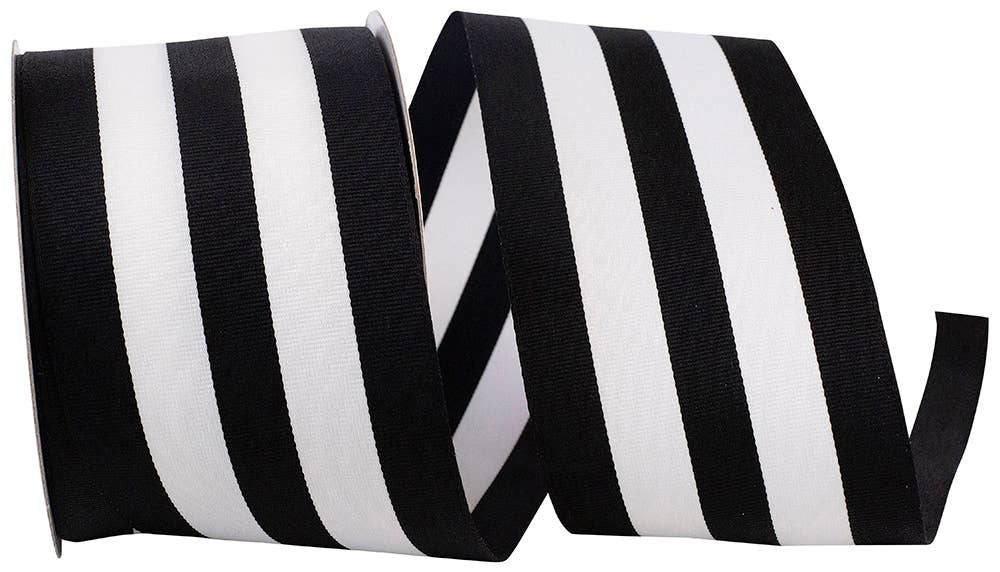 Enhance your projects with our Krystal Black & White Grosgrain Ribbon 2.5", featuring a jumbo stripe pattern for a striking statement. The wired edge combines structure and flexibility for effortless shaping.